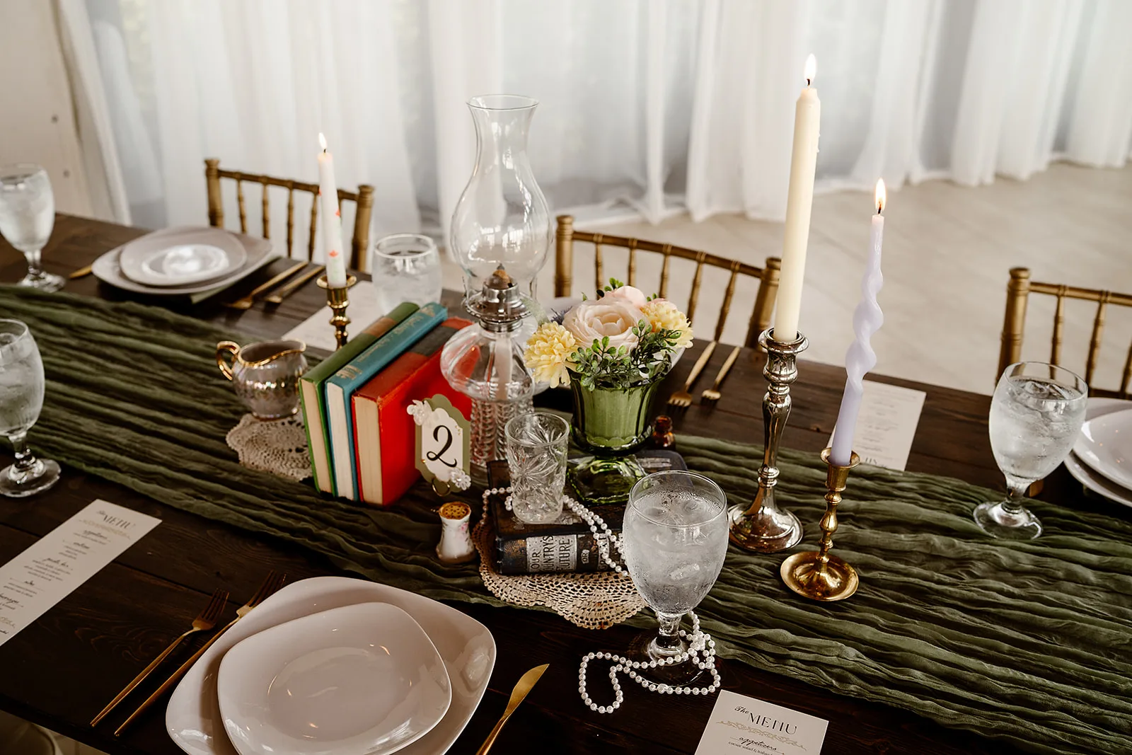 The mix of their vintage finds with my collection of brass candlesticks tied everything together beautifully. Abigail’s vision was so vivid and thoughtfully communicated that it felt natural to bring it to life. I always knew exactly what direction to take to make sure every detail reflected their personalities and dreams for the day.