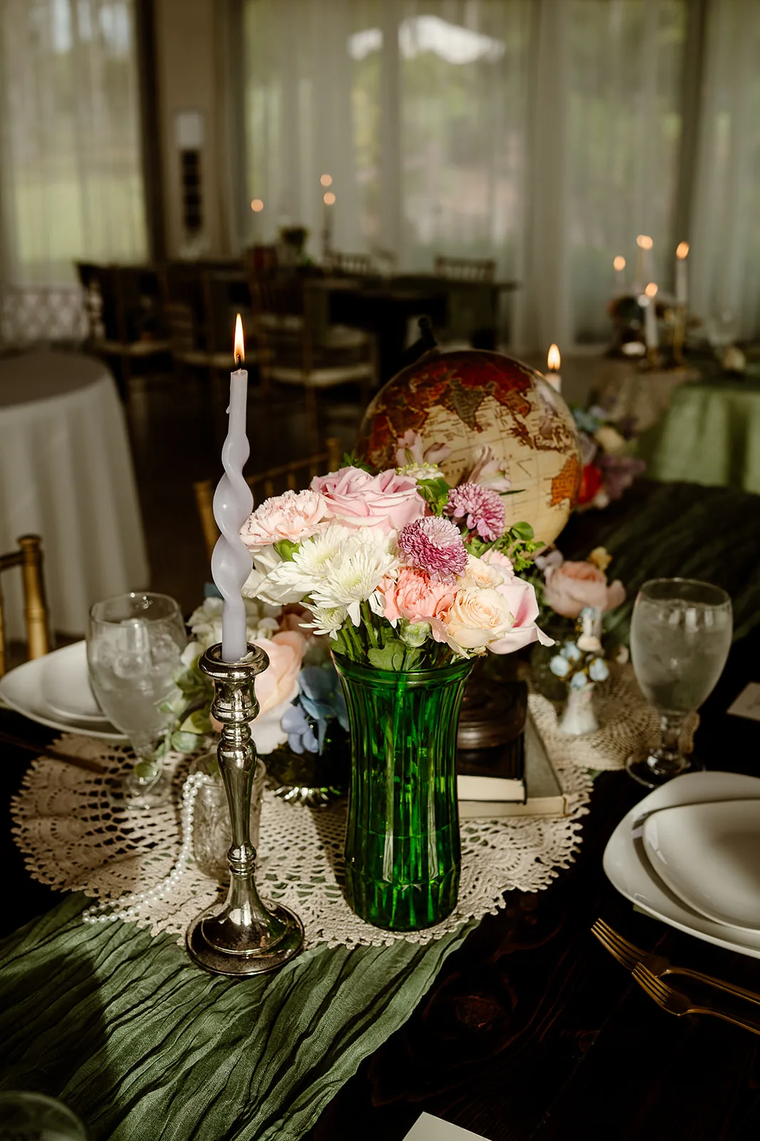 They had been collecting the beautiful treasures from thrift shops and antique stores in Texas, where Abigail went to school, Virginia, where Abigail’s mom lives, and in Central Florida, and when we blended them with my brass candlesticks, every table took on its own personality and charm.